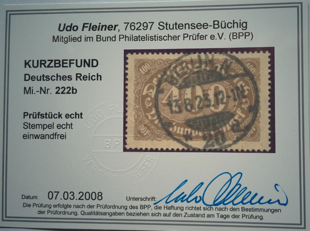 | Prüfgebiet: | Deutsches Reich 1919 - 1923 (Mi-Nr. 107 - 343) |