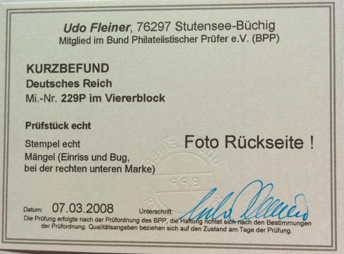 | Zusatzinformationen und Suchstichworte: | Gestempelt, Viererblock, Mängel untere rechte Marke |