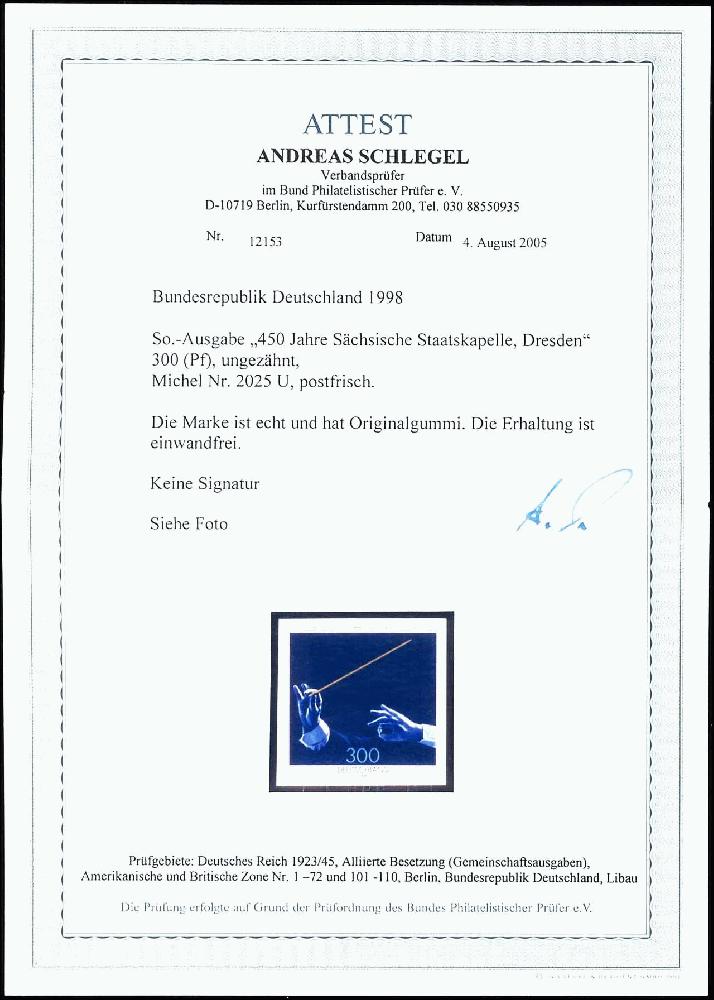| Prüfer: | Schlegel, Andreas (BPP (Bund Philatelistischer Prüfer)) |