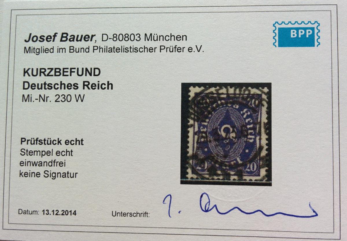 | Prüfgebiet: | Deutsches Reich 1919 - 1923 (Mi-Nr. 107 - 343) |