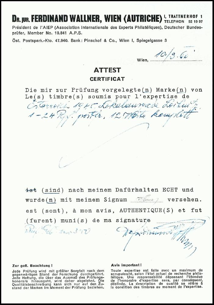 | Prüfgebiet: | Österreich - ab 1945 Lokalausgaben |