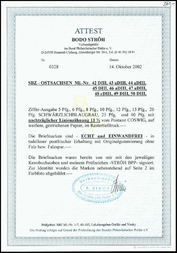 | Prüfgebiet: | Alliierte Besetzung SBZ Ost-Sachsen |