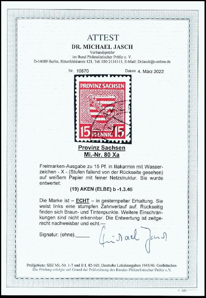 | Prüfgebiet: | Alliierte Besetzung SBZ Provinz Sachsen |