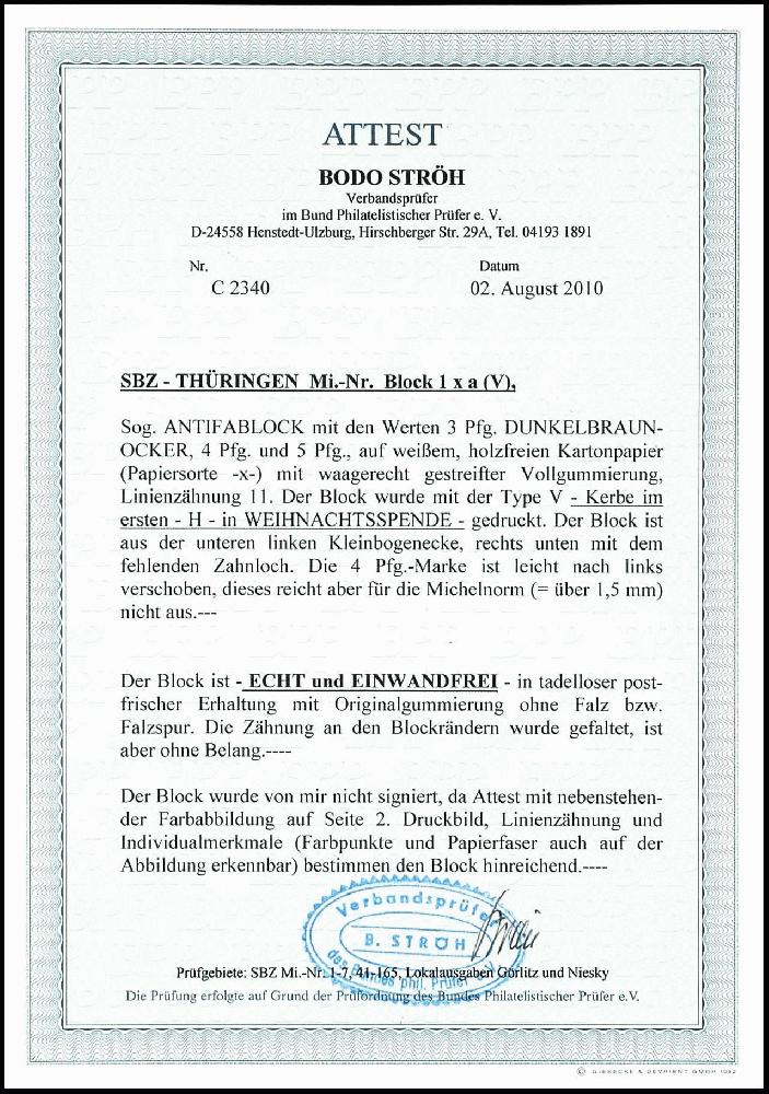 | Prüfgebiet: | Alliierte Besetzung SBZ Thüringen Blocks |