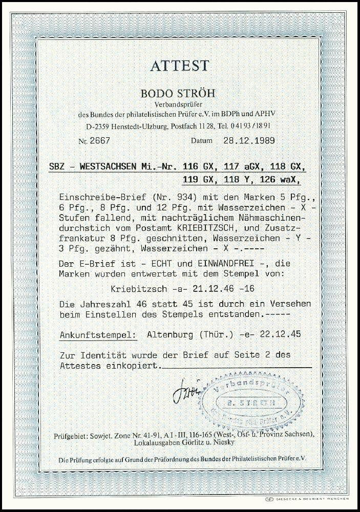 | Prüfgebiet: | Alliierte Besetzung SBZ West-Sachsen |