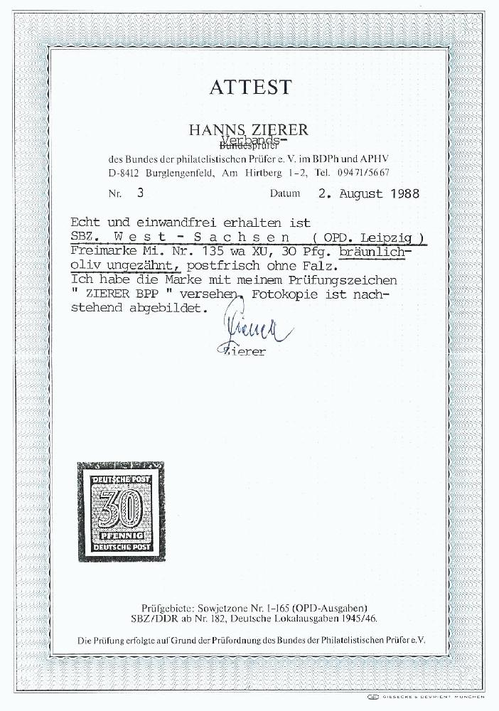 | Prüfgebiet: | Alliierte Besetzung SBZ West-Sachsen |