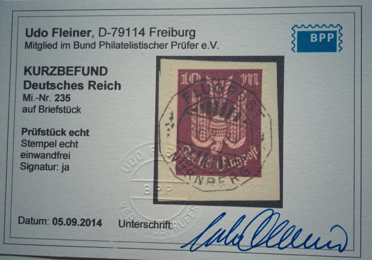| Prüfer: | Fleiner, Udo (BPP (Bund Philatelistischer Prüfer)) |