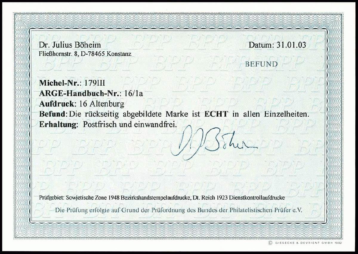 | Prüfgebiet: | Alliierte Besetzung SBZ Bezirkshandstempel Bezirk 16 |