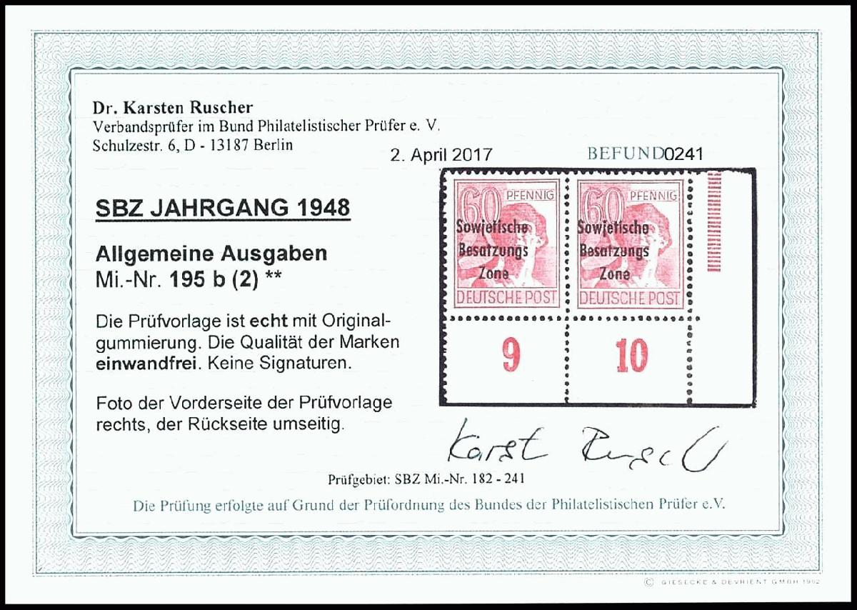 | Prüfgebiet: | Alliierte Besetzung SBZ Allgemeine Ausgaben |