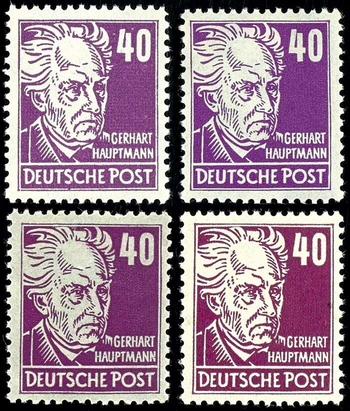 | Zusatzinformationen und Suchstichworte: | Dr. Reinhard Fischer 188. Auktion 1. - 3. September 2022 Los 3914 Sowjetische Zone 40 Pfennig "Hauptmann", alle vier katalogisierten Farben, tadellos postfrisch, für c- und d-Farbe je Fotobefund Dr. Burkhardt BPP, b bestens gepr. Paul BPP, Mi. 970.- Ausruf 220,00 EUR [Hinweis der Redaktion - Beschreibung anteilig unpassend: der Prüfer Burkhardt prüft für den VP und nicht den BPP] |