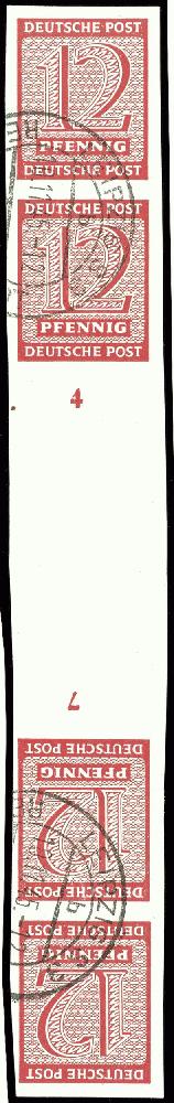 | Zusatzinformationen und Suchstichworte: | Dr. Reinhard Fischer 188. Auktion 1. - 3. September 2022 Los 3944 Sowjetische Zone 12 Pfg + Z + Z + 12 Pfg, Wasserzeichen 1X, geschnitten, senkrechter Kehrdruckzusammendruck, tadellos gestempelt "Leipzig S 3b 10.11.45-12", unsigniert, Fotoattest Dr. Jasch BPP (2022): "echt und einwandfrei", Mi. 800.- - echt gestempelte Zusammendrucke dieser Ausgabe sind selten! Ausruf 220,00 EUR |
