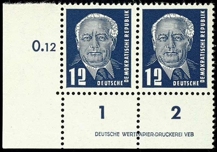 | Zusatzinformationen und Suchstichworte: | Dr. Reinhard Fischer 188. Auktion 1. - 3. September 2022 Los 4007 DDR 12 Pfg Pieck II mit WZ. XII und Druckvermerk 1, postfrisches Eckrandpaar, tadellos, Fotobefund Mayer VP, Mi. 350.- Zuschlag 165,00 EUR |