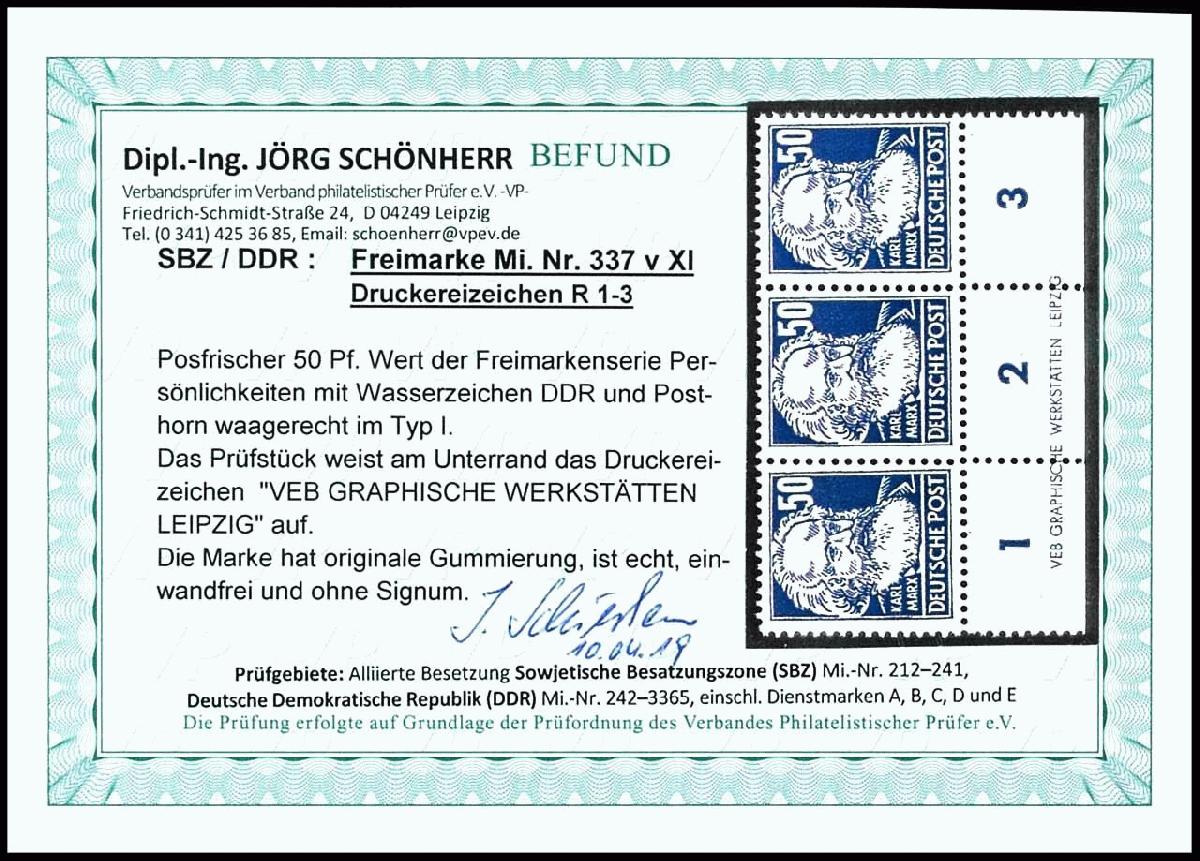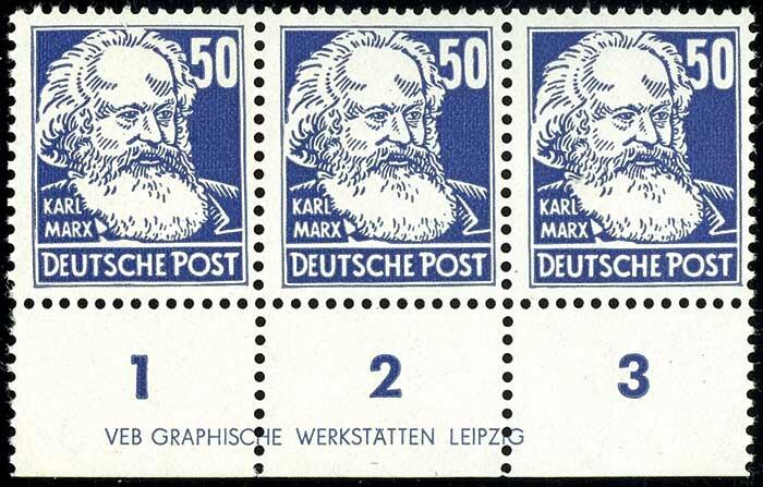 | Zusatzinformationen und Suchstichworte: | Dr. Reinhard Fischer 188. Auktion 1. - 3. September 2022 Los 4027 DDR 50 Pfg Köpfe II, gestrichenes Papier, Wz. XI, waagerechter Dreierstreifen vom unteren Bogenrand (Seitenrand fehlt) mit komplettem Druckvermerk, tadellos postfrisch, Fotobefund Schönherr VP, Mi. 350.- Ausruf 60,00 EUR |
