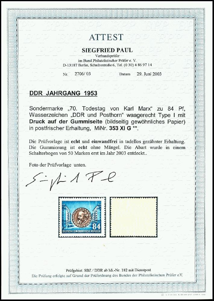| Zusatzinformationen und Suchstichworte: | Dr. Reinhard Fischer 188. Auktion 1. - 3. September 2022 Los 4033 DDR 84 Pfg Karl-Marx-Jahr, Abart "Druck auf der Gummiseite", tadellos postfrisch, seltene Marke, Fotoattest Paul BPP: "Die Prüfvorlage ist echt und einwandfrei in tadellos gezähnter Erhaltung. Die Gummierung ist echt und ohne Mängel.", Mi. 800.- Ausruf 100,00 EUR |