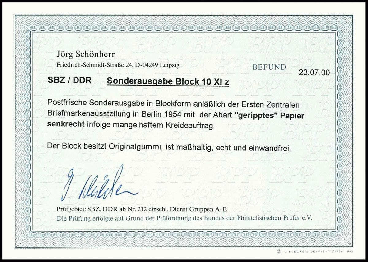 | Zusatzinformationen und Suchstichworte: | Dr. Reinhard Fischer 188. Auktion 1. - 3. September 2022 Los 4058 DDR Ausstellungsblock 1954, Wz. Type I, geripptes Papier, postfrisch, Fotobefund Schönherr BPP: "echt und einwandfrei", Mi. 2.000,- Ausruf 400,00 EUR |