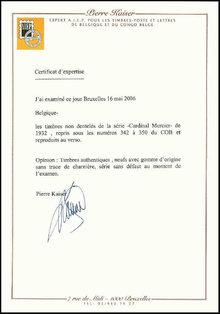 | Zusatzinformationen und Suchstichworte: | Dr. Reinhard Fischer 188. Auktion 1. - 3. September 2022 Los 4367 Belgien 1932, 10 c. - 10 Fr. Kardinal Mercier, kpl. ungezähnt, postfrisch, bis auf 10 Fr. alle vom Bogenunterrand, tadellos, Fotoattest Kaiser, COB 1300,- Ausruf 400,00 EUR |