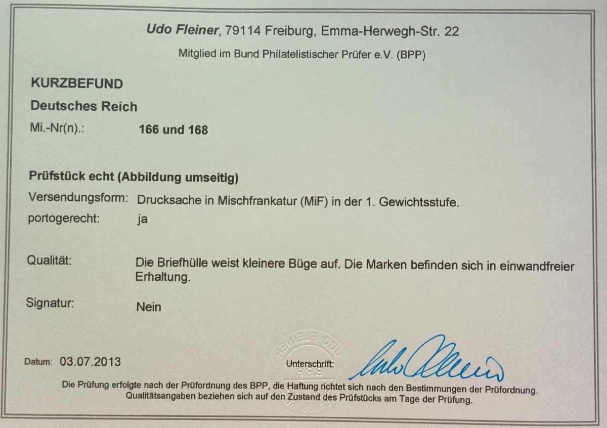 | Prüfer: | Fleiner, Udo (BPP (Bund Philatelistischer Prüfer)) |
