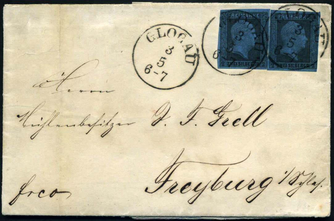| Zusatzinformationen und Suchstichworte: | 75. AAK Phila GmbH Auktion 9. September 2022 Los 1414 (D) Altdeutschland Preussen 2 Sgr schwarz a. blau als portoger. MeF a. Doppelbf. v. GLOGAU (K1) n. Freyburg in Schlesien m. ausführlichem FA Brettl BPP "tadellose Erhaltung, seltene Ortstempelentwertung, sehr späte Verwendung (3 Jahre nach Ausgabe), interessanter u. attraktiver Brief" Zuschlag 360,00 EUR |