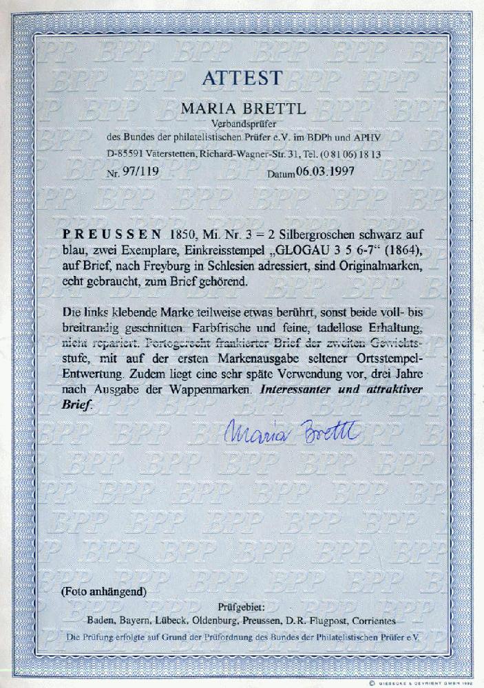 | Prüfer: | Brettl, Maria (BPP (Bund Philatelistischer Prüfer)) |