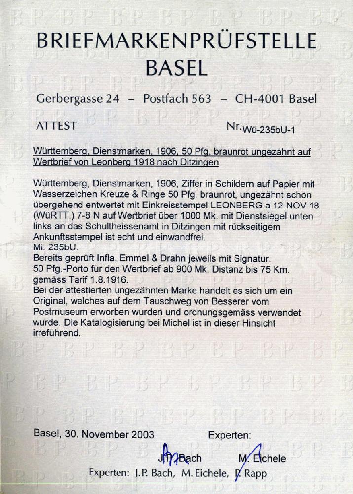 | Prüfer: | Bach, Jean-Paul, und Eichele, Martin (BPB (Briefmarkenprüfstelle Basel)) |