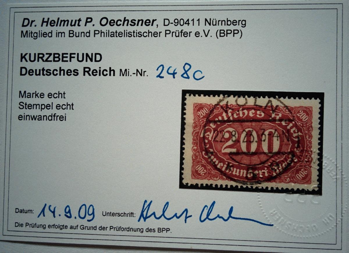 | Prüfgebiet: | Deutsches Reich 1919 - 1923 (Mi-Nr. 107 - 343) |