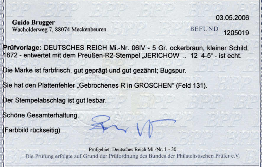| Prüfer: | Brugger, Guido (BPP (Bund Philatelistischer Prüfer)) |