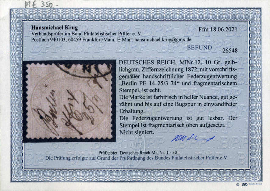 | Prüfer: | Krug, Hansmichael (BPP (Bund Philatelistischer Prüfer)) |