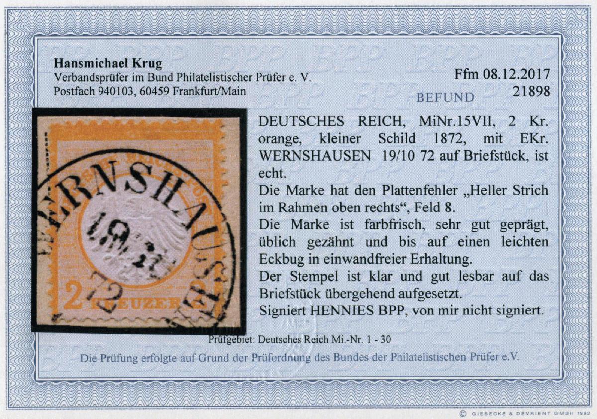 | Prüfgebiet: | Deutsches Reich 1871 - 1918 (Mi-Nr. 1 - 106) |