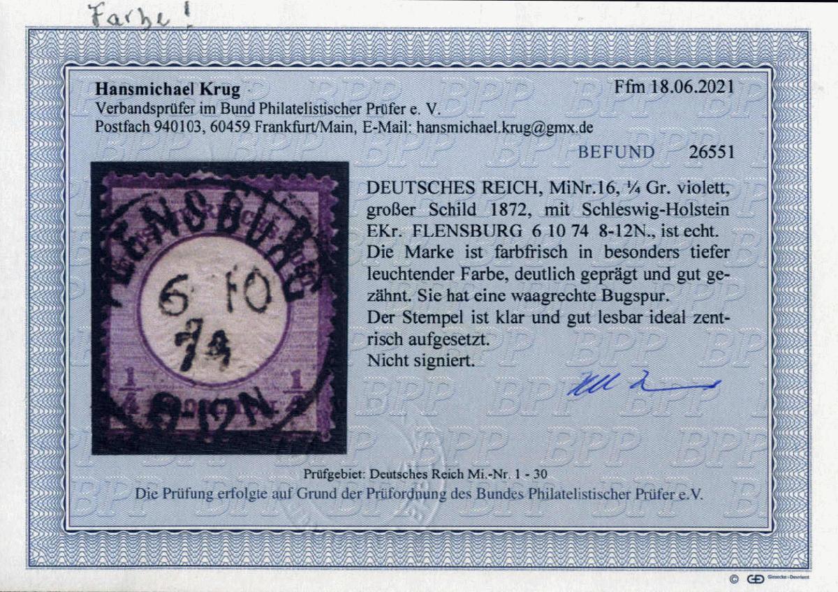 | Prüfgebiet: | Deutsches Reich 1871 - 1918 (Mi-Nr. 1 - 106) |