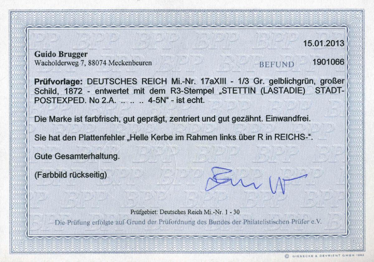 | Prüfer: | Brugger, Guido (BPP (Bund Philatelistischer Prüfer)) |