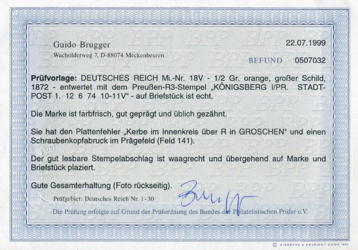 | Prüfer: | Brugger, Guido (BPP (Bund Philatelistischer Prüfer)) |