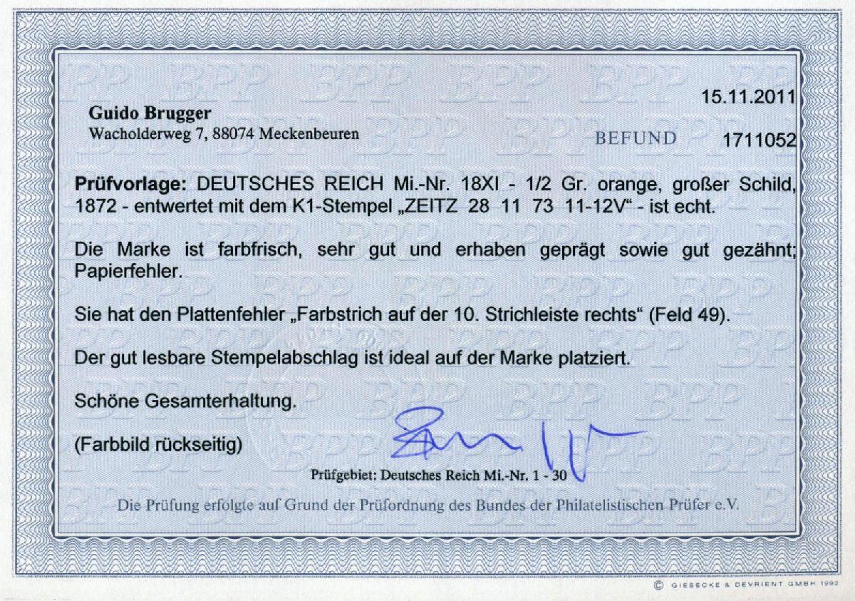 | Prüfgebiet: | Deutsches Reich 1871 - 1918 (Mi-Nr. 1 - 106) |
