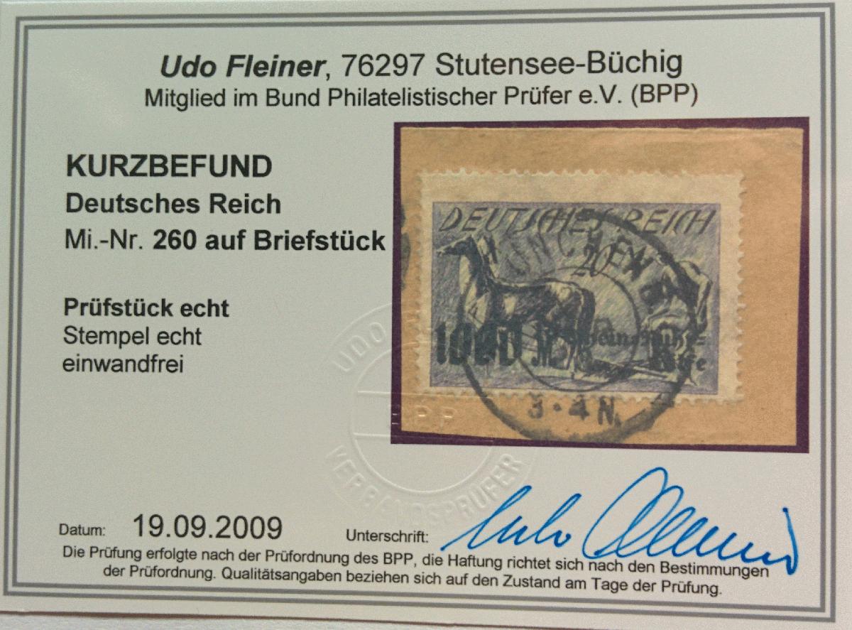 | Prüfer: | Fleiner, Udo (BPP (Bund Philatelistischer Prüfer)) |