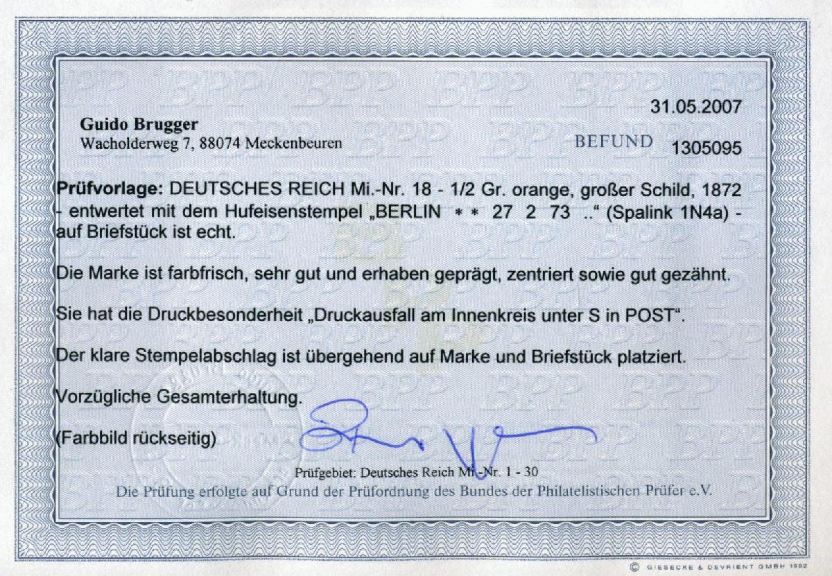 | Prüfer: | Brugger, Guido (BPP (Bund Philatelistischer Prüfer)) |