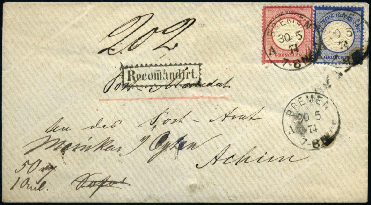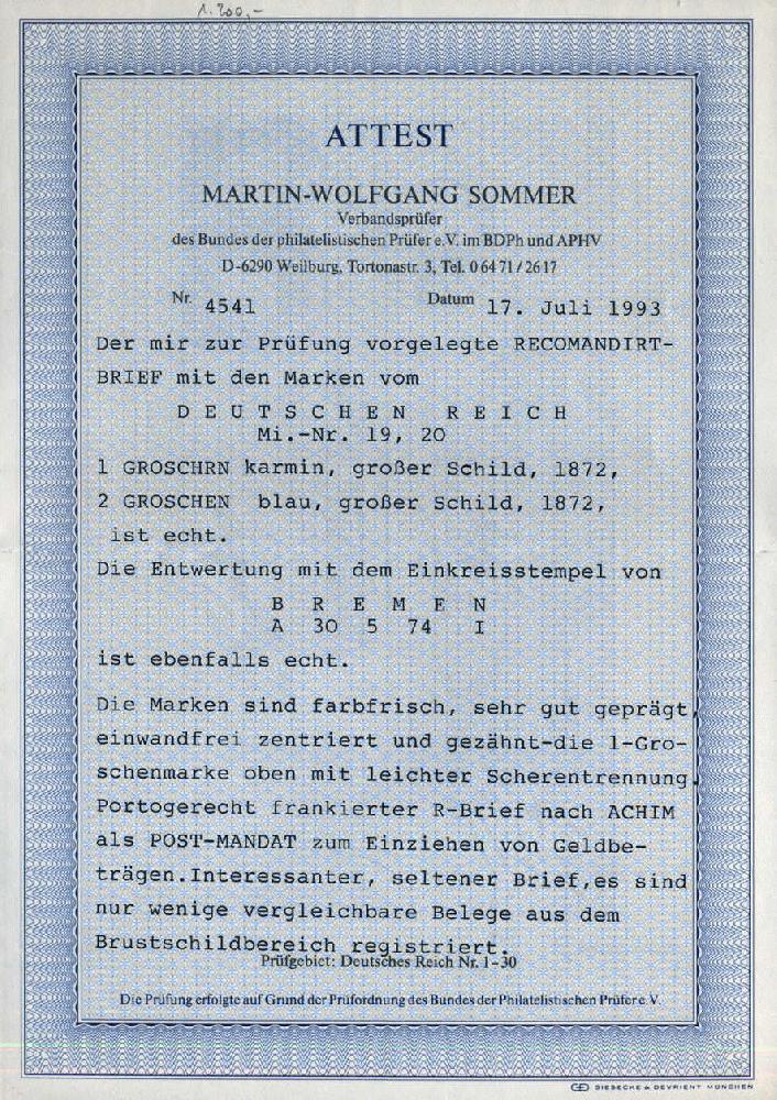 | Zusatzinformationen und Suchstichworte: | 75. AAK Phila GmbH Auktion 9. September 2022 Los 1845 (D) Deutsches Reich, 1872 Grosser Brustschild 1 u. 2 Gr gr. Schild a. portoger. Bf. v. Bremen n. Achim als Post-Mandat zum Einziehen von Geldbeträgen m. FA Sommer BPP "1 Gr oben leichte Scherentrennung, sonst einwandfrei, ...nur wenige vergleichbare Stücke registriert", RR Ausruf 250,00 EUR |