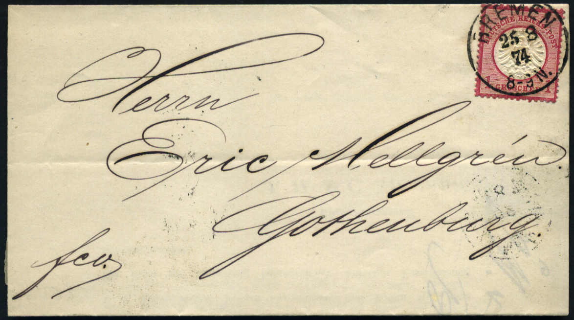 | Zusatzinformationen und Suchstichworte: | 75. AAK Phila GmbH Auktion 9. September 2022 Los 1854 (D) Deutsches Reich, 1872 Grosser Brustschild 1 Gr gr. Schild, portoger. EF a. sehr seltener Auslands-Drucksache v. Bremen n. Gothenburg/Schweden m. einwandfreiem FA Sommer BPP "tadelloser sehr seltener 1-Groschen-Brief", RR Ausruf 200,00 EUR |