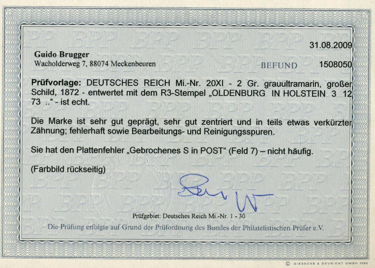 | Prüfer: | Brugger, Guido (BPP (Bund Philatelistischer Prüfer)) |
