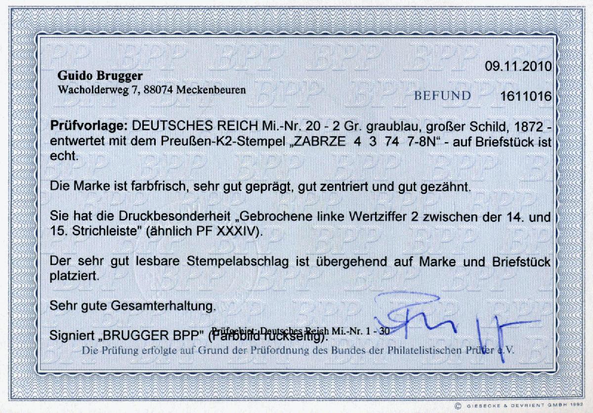 | Prüfer: | Brugger, Guido (BPP (Bund Philatelistischer Prüfer)) |