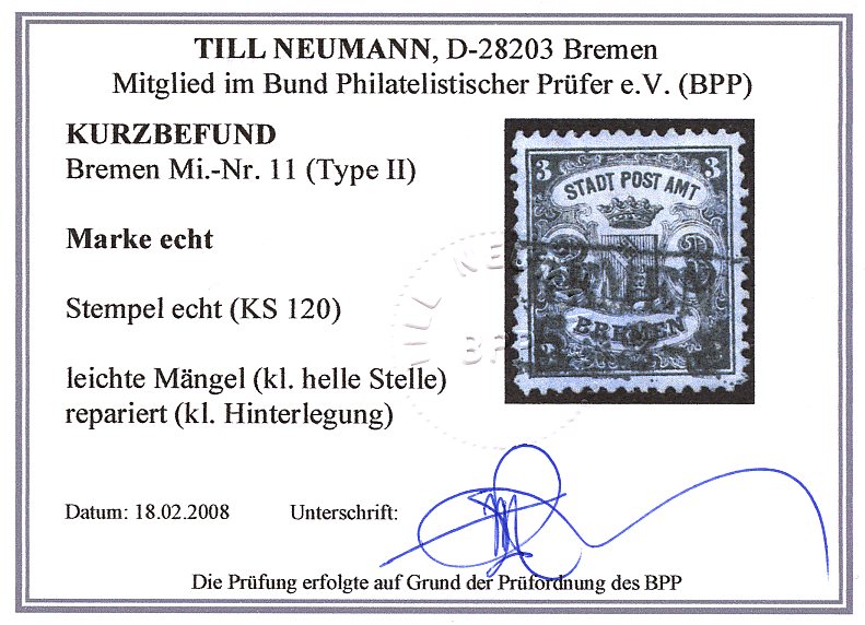 | Prüfer: | Neumann, Till (BPP (Bund Philatelistischer Prüfer)) |