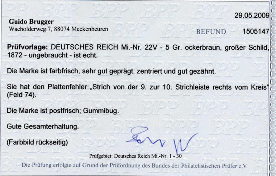 | Prüfgebiet: | Deutsches Reich 1871 - 1918 (Mi-Nr. 1 - 106) |