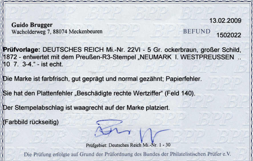 | Prüfgebiet: | Deutsches Reich 1871 - 1918 (Mi-Nr. 1 - 106) |
