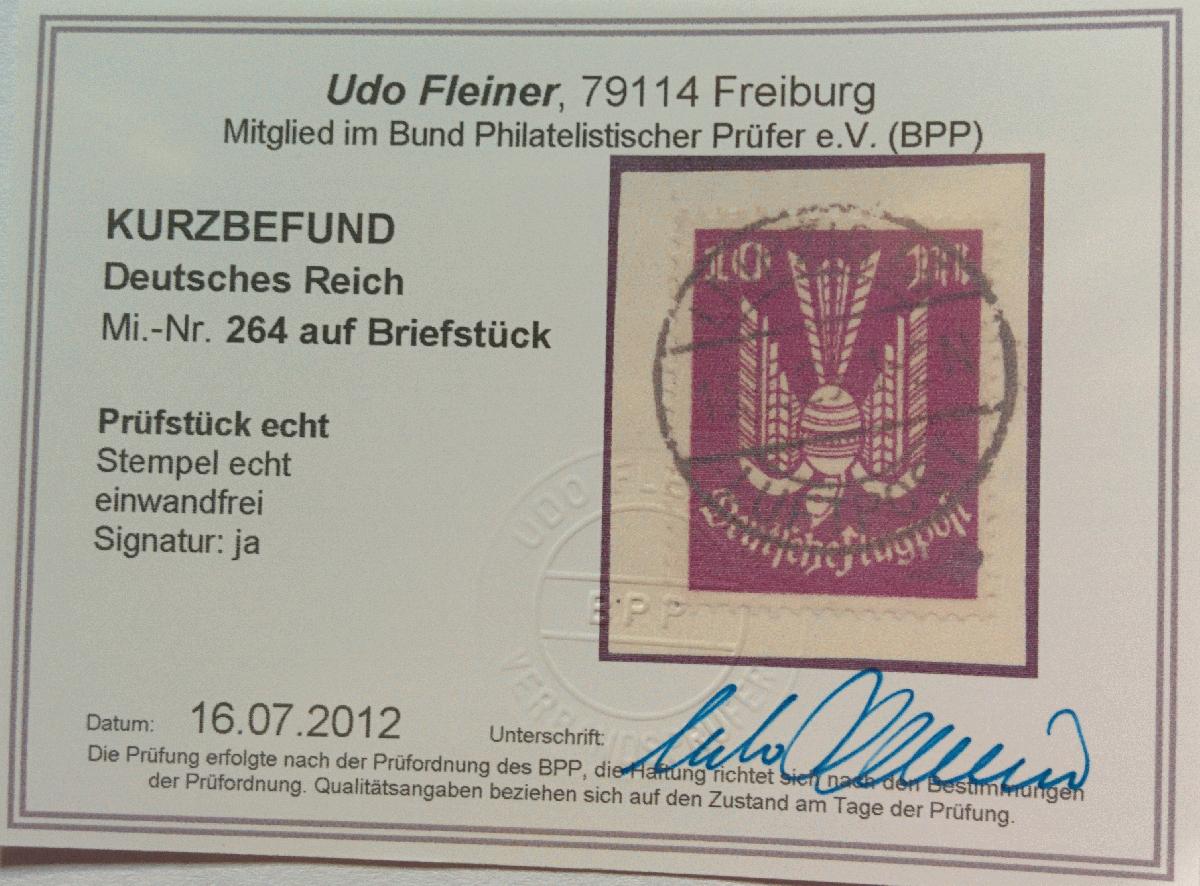 | Prüfgebiet: | Deutsches Reich 1919 - 1923 (Mi-Nr. 107 - 343) |