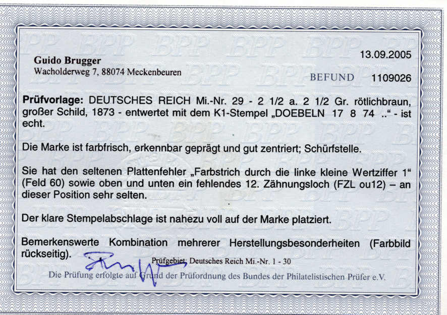 | Prüfer: | Brugger, Guido (BPP (Bund Philatelistischer Prüfer)) |