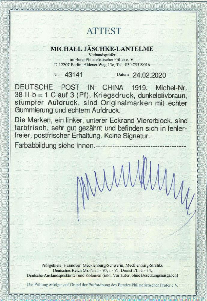 | Prüfer: | Jäschke-Lantelme, Michael (BPP (Bund Philatelistischer Prüfer)) |