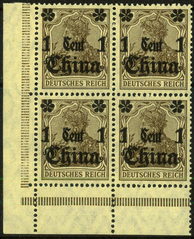 | Zusatzinformationen und Suchstichworte: | 75. AAK Phila GmbH Auktion 9. September 2022 Los 4229 (D) Deutsche Auslandspost China 1 C a. 3 Pf Germania m. rußigem Aufdruck im 4er-Bl. li.u.Ecke, postfr. Luxus m. einwandfreiem FA Jäschke-L. BPP Ausruf 140,00 EUR |