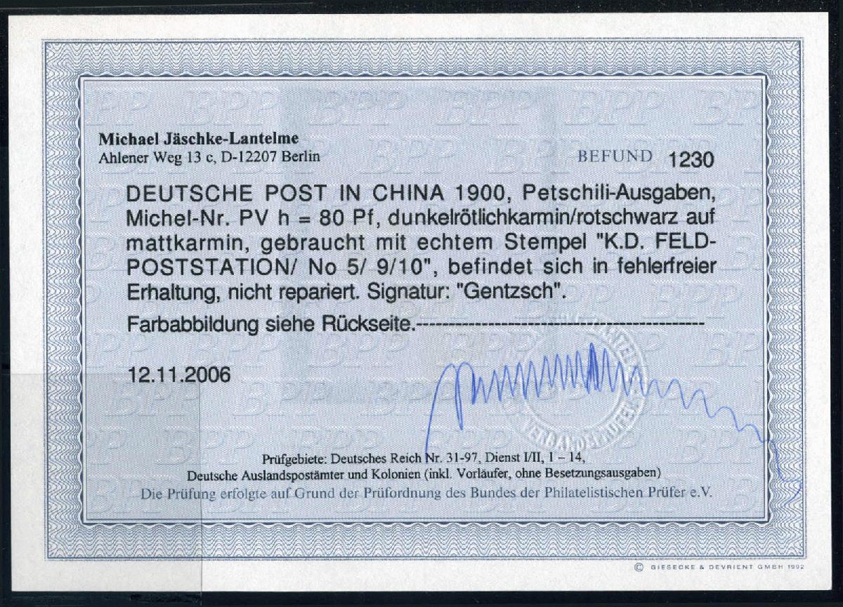 | Prüfgebiet: | Deutsche Auslandspostämter China Petschili-Ausgaben |