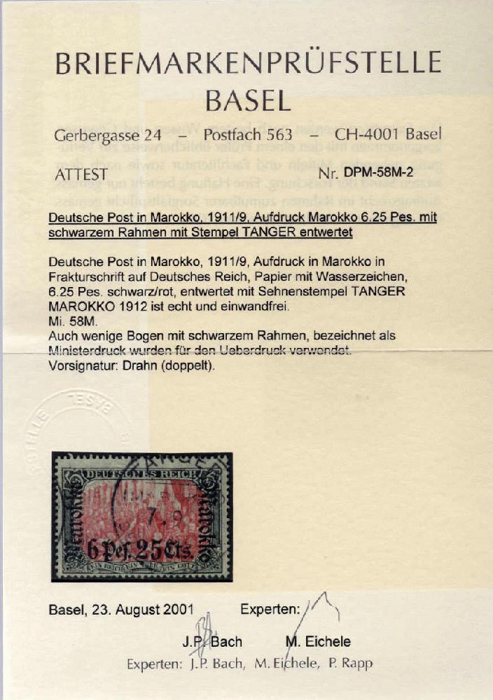 | Prüfgebiet: | Deutsche Auslandspostämter Marokko |