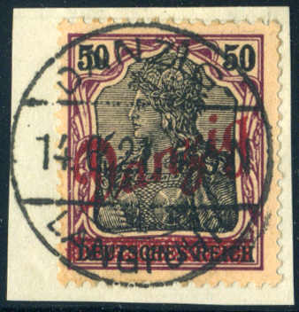 | Zusatzinformationen und Suchstichworte: | 75. AAK Phila GmbH Auktion 9. September 2022 Los 4587 (D) Danzig 50 Pf Kleiner Innendienst zentr. rundgest. a. Luxus-Bfstck. m. einwandfreiem Befund Erdwien BPP Zuschlag 85,00 EUR |