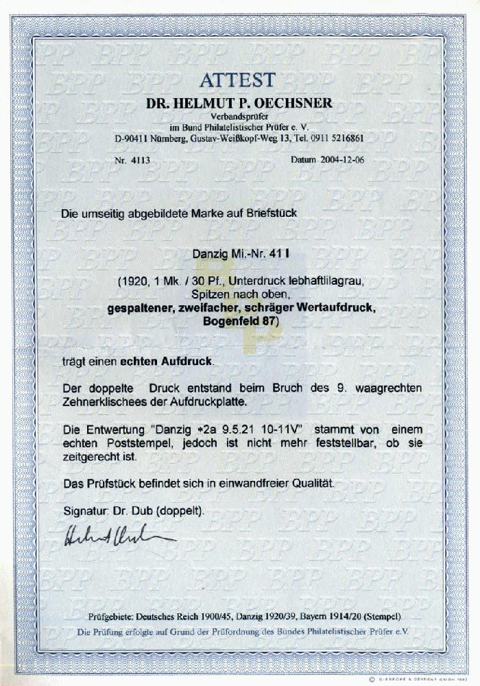 | Prüfer: | Oechsner, Helmut (BPP (Bund Philatelistischer Prüfer)) |