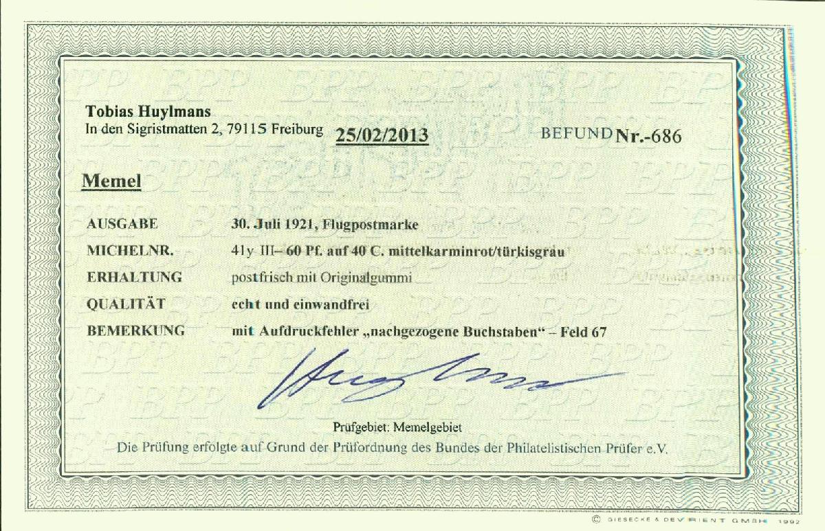 | Prüfer: | Huylmans, Tobias (BPP (Bund Philatelistischer Prüfer)) |